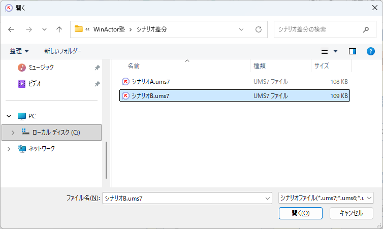ファイルを開くダイアログが出るので、差分を確認したいシナリオファイルを選択します。