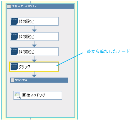 追加されたノード(比較用に選択したシナリオの中に存在しないノード)は黄色の枠線でフォーカス表示されます。