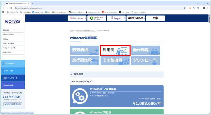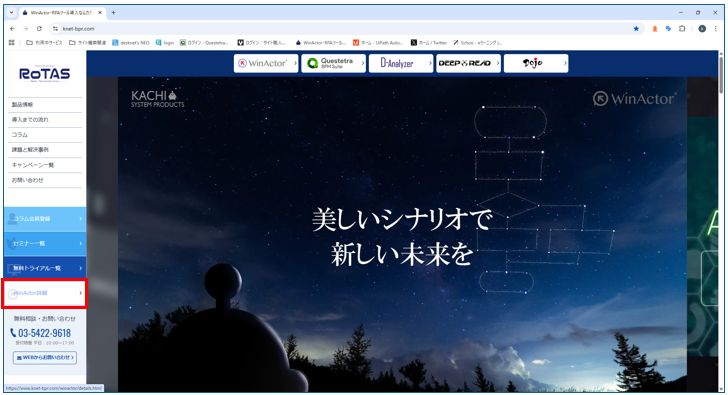 画面左のメニューから「WinActor詳細」ボタンをクリック。