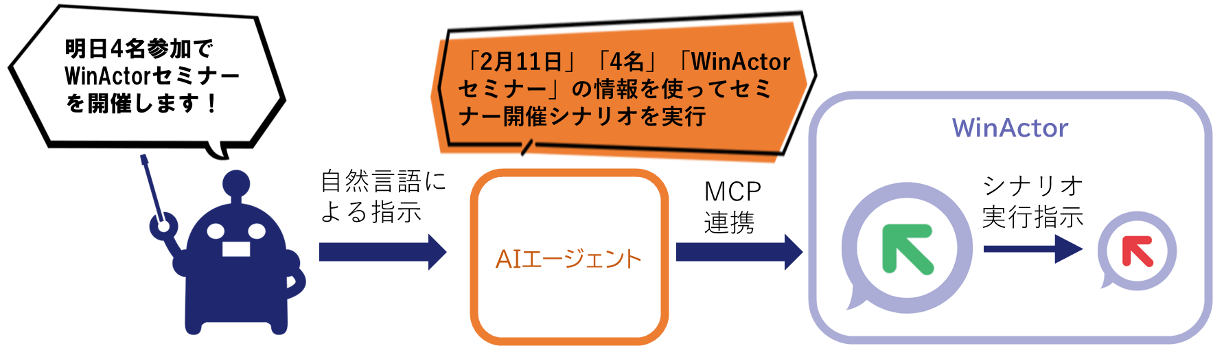 すでにWinActorをご利用中の企業は、現在お持ちのシナリオをそのまま活用し、AIエージェントとの連携を簡単に実現できます。